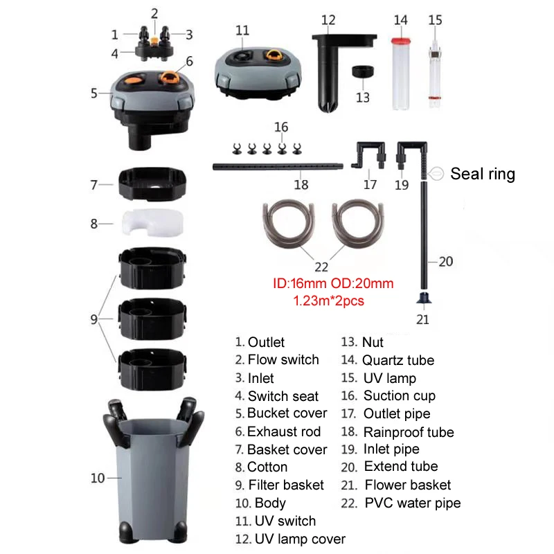 Amazon Com Bykaeler Canister Filter For Aquarium External Fish Tank Filter With Filter Media And Spray Bar 317gph Uv Automotive